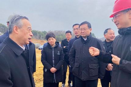 3月03日上午馬鞍山市委書記張?jiān)婪?,市委副書記、市政府常?wù)副市長吳勁一行蒞臨安徽交建承建的寧蕪改擴(kuò)建黃梅山保通線項(xiàng)目現(xiàn)場考察調(diào)研...