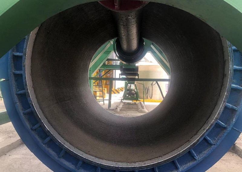 本項(xiàng)目共預(yù)制圓管涵4188節(jié),涵身混凝土設(shè)計(jì)標(biāo)號(hào)C30,采用先預(yù)制后安裝的施工方法,所預(yù)制的Φ1.5m涵管的管壁厚度為16cm,標(biāo)準(zhǔn)管節(jié)長2m,輔助管節(jié)長0.5m。施工采用干硬性混凝土,使用懸輥機(jī)輥壓離心制管法預(yù)制管節(jié)。