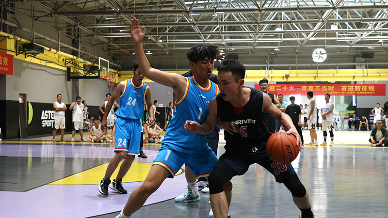 隨著一聲哨響,東、西兩側(cè)場地運動員在裁判拋出的籃球面前,屈膝發(fā)力,伸直手臂,“啪”的一聲,完成跳球,比賽正式開始。賽場上球鞋摩擦地面,籃球砸地的聲音此起彼伏,場周吶喊助威的聲音不絕于耳。此時的他們拋下平日里工作時的嚴(yán)肅形象,身影矯健、防守周密,拼盡全力奮力廝殺,他們勇敢果斷、活力無限。他們用精湛的球技和堅韌拼搏、誓不言敗的精神,為觀眾們奉獻了許多精彩的瞬間。