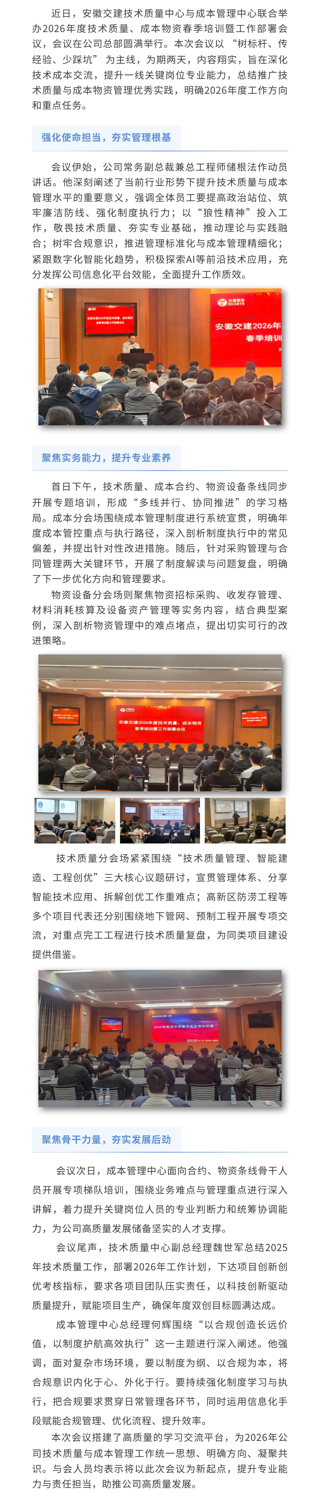 安徽交建2026年度技術(shù)質(zhì)量、成本物資春季培訓暨工作部署會議圓滿舉行